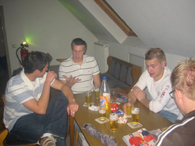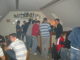 eingefunden, um bei frisch gezapften Pils und von Bald-Bräutigam